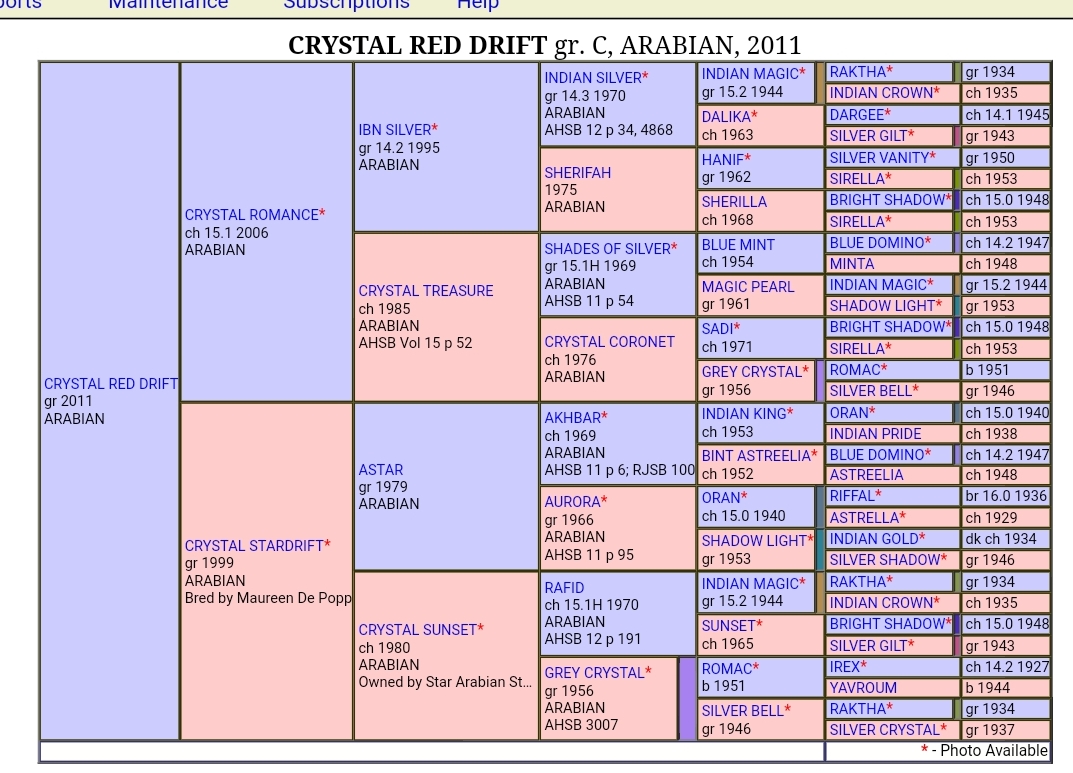 Crystal Red Drifts dam Crystal Stardrift is an AHS Premium awarded mare.